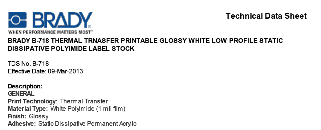 | 材質(zhì):聚酰亞胺 BRADY B-718 |